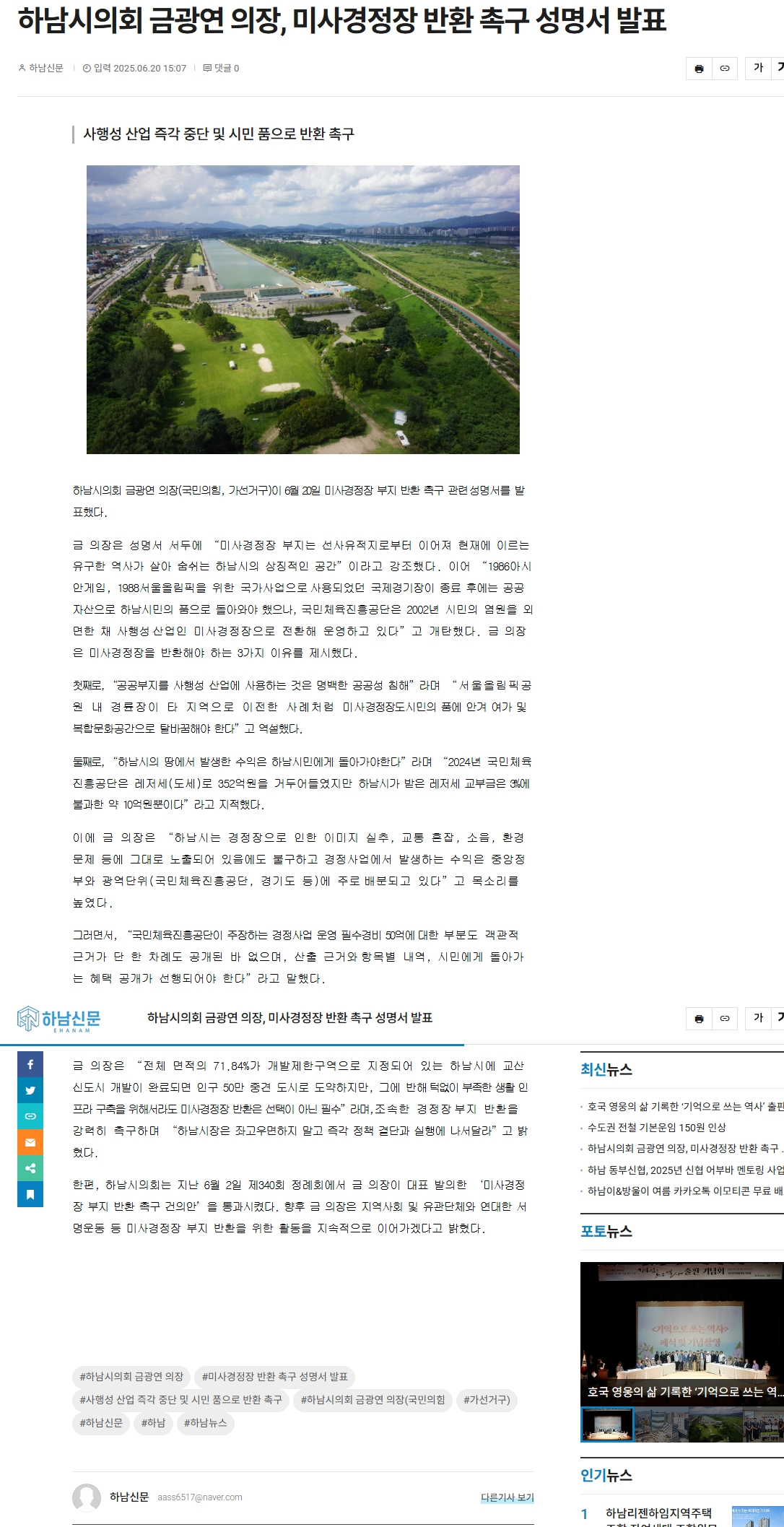 2025.06.21. 미사경정장 반환 촉구 성명서 발표