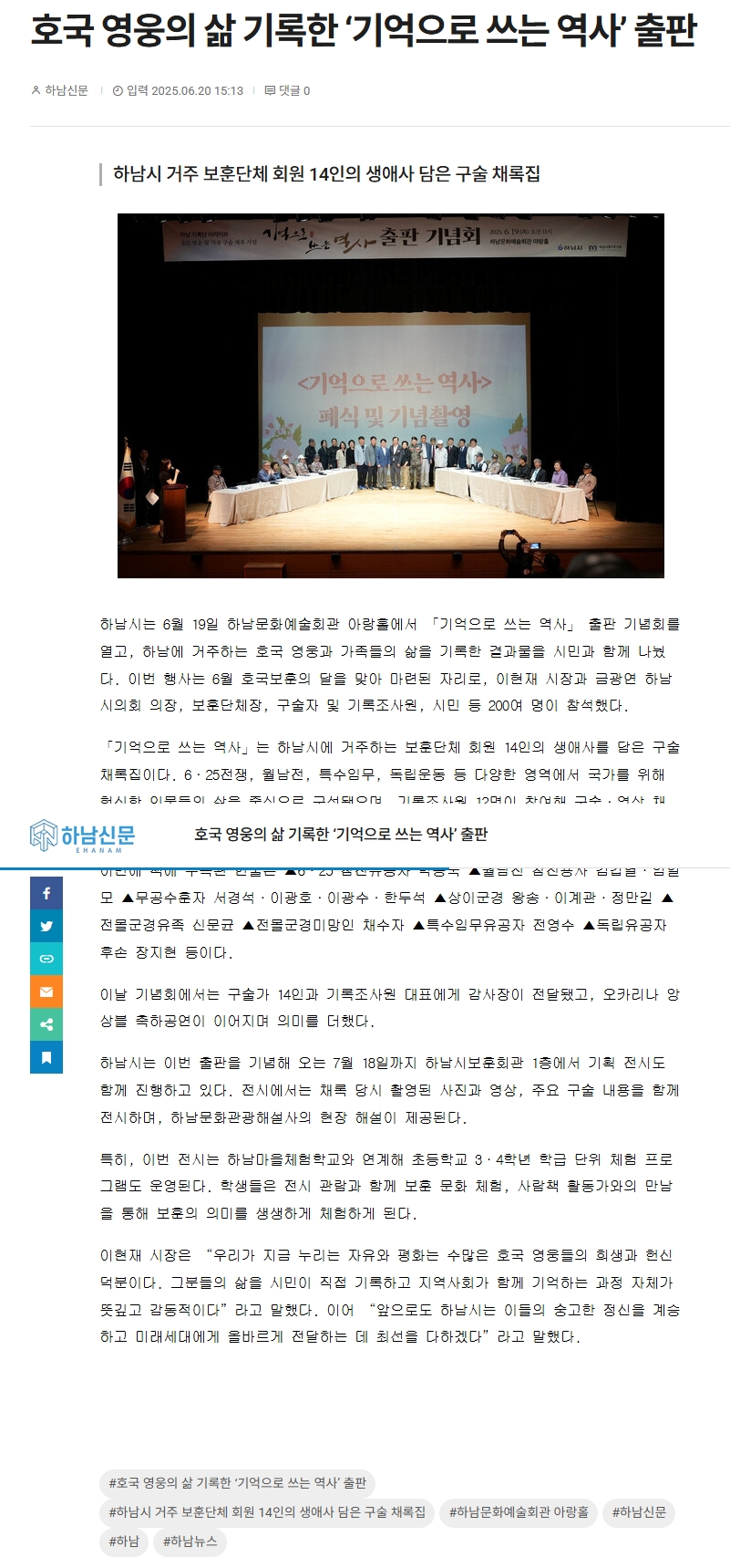 2025.06.21.호국영웅의 삶을 가록한 '기억으로 쓰는 역사' 출판
